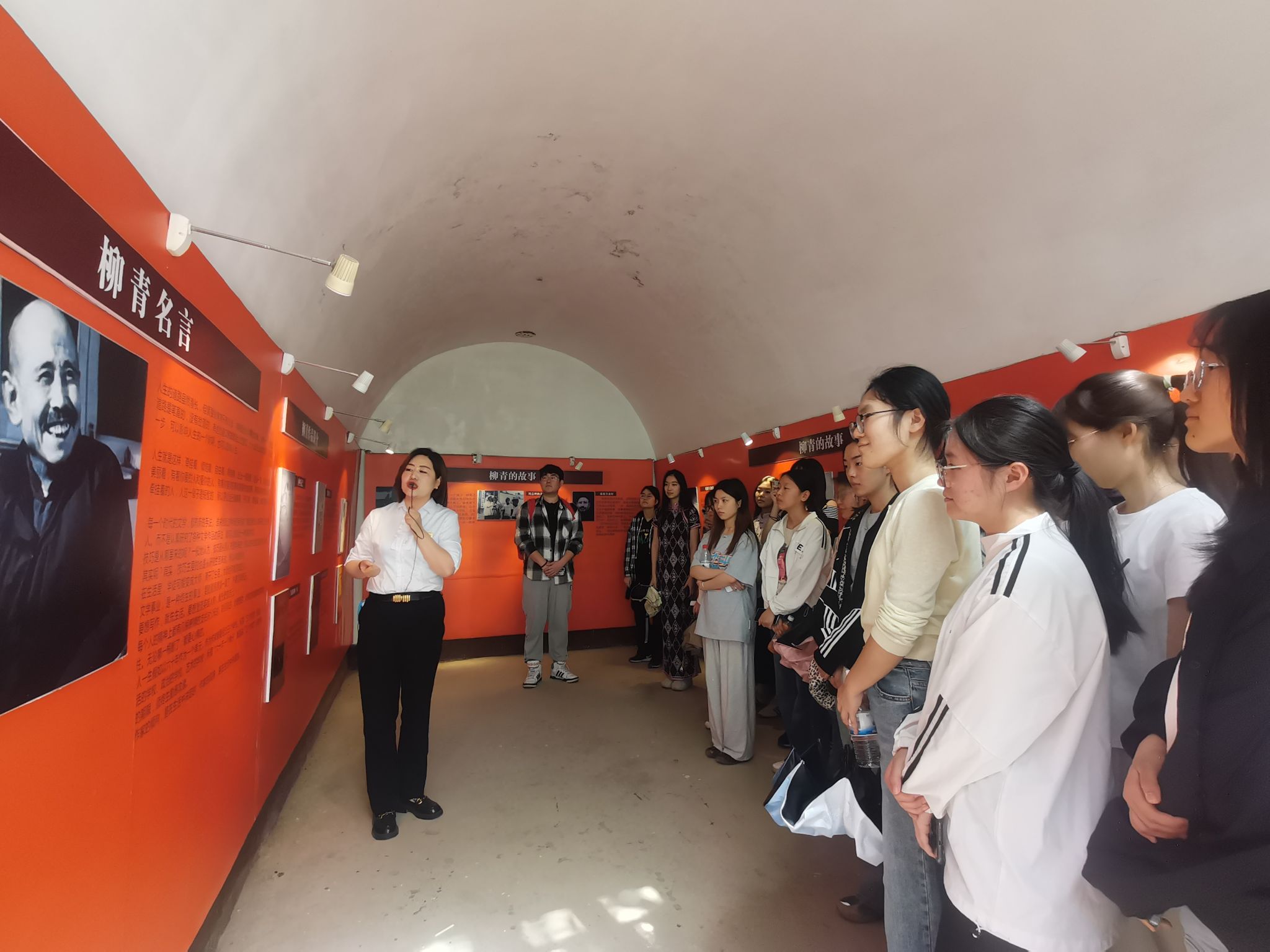 “襟怀纳百川,志趣万仞山”,研学首站是位于柳青广场的柳青文学馆。在讲解员的带领下,同学们走近柳青,了解到他在落户长安十四年,参与见证了皇甫村互助合作运动的发展,并以此为素材创作了中国现实主义文学的辉煌巨著《创业史》。凝望一代文学大师与人民群众朝夕相处的沧桑岁月,同学们领会到柳青独特的不凡人生与创作道路,感悟他与人民同呼吸共命运、创造幸福生活的理想信念。