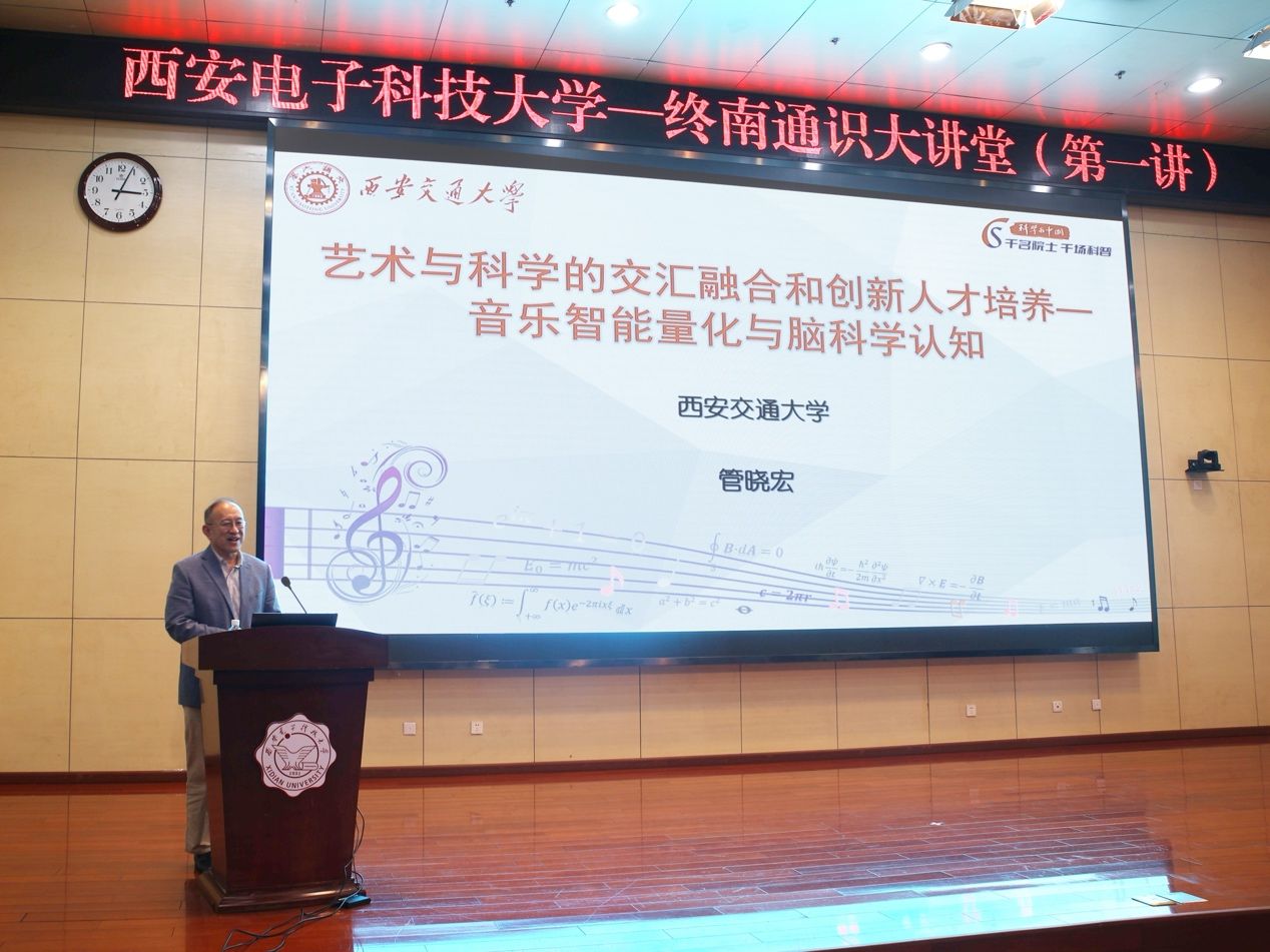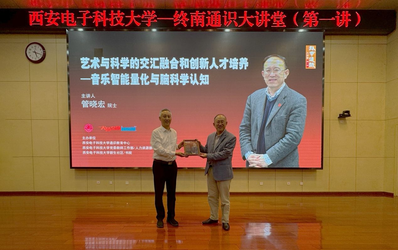 (通讯员 华俊文 蒋天翔)10月11日下午,西电首场“终南通识大讲堂”(“大师总师进校园”支持项目),在南校区办公楼210报告厅成功开讲。我国著名系统工程学家、中国科学院院士、西安交通大学电子与信息学部主任管晓宏教授以《艺术与科学的交汇融合和创新人才培养—音乐智能量化与脑科学认知》为题担任讲座嘉宾。党委常委、副校长王泉担任讲座主持人。近3个小时的讲座,吸引了共400余名师生聆听。