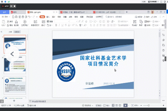 艺术系8名教师与辛教授进行了3小时的专项讨论。辛教授仔细分析了各位教师的选题方向和研究内容,回答各位教师的多个问题,并给出极具价值的宝贵意见和建议。最后,王成来再次感谢辛雪峰教授的悉心指导,并表示随着后续申报工作的有序开展,会再次邀请辛教授莅临指导工作。