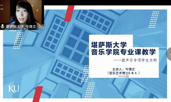 首先,第一位主讲人岑倩文就美国堪萨斯大学声乐专项展开介绍,以声乐专业、艺术指导、语音语言以及表演课程为例,详细介绍了堪萨斯大学音乐学院为声乐专项学生设计的各类课程,让同学们更加全面的了解声乐专项完善的课程体系。