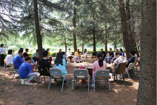 五月的校园,鸟语风声,绿荫环绕。本次活动特邀请西安国际医学中心医院北院区心理治疗师杨涛,音乐治疗师张缤、李理达组成的音乐治疗团队,带领两院20余名研究生开展了一次丰富多彩、极具吸引力和感染力的团体音乐治疗活动。