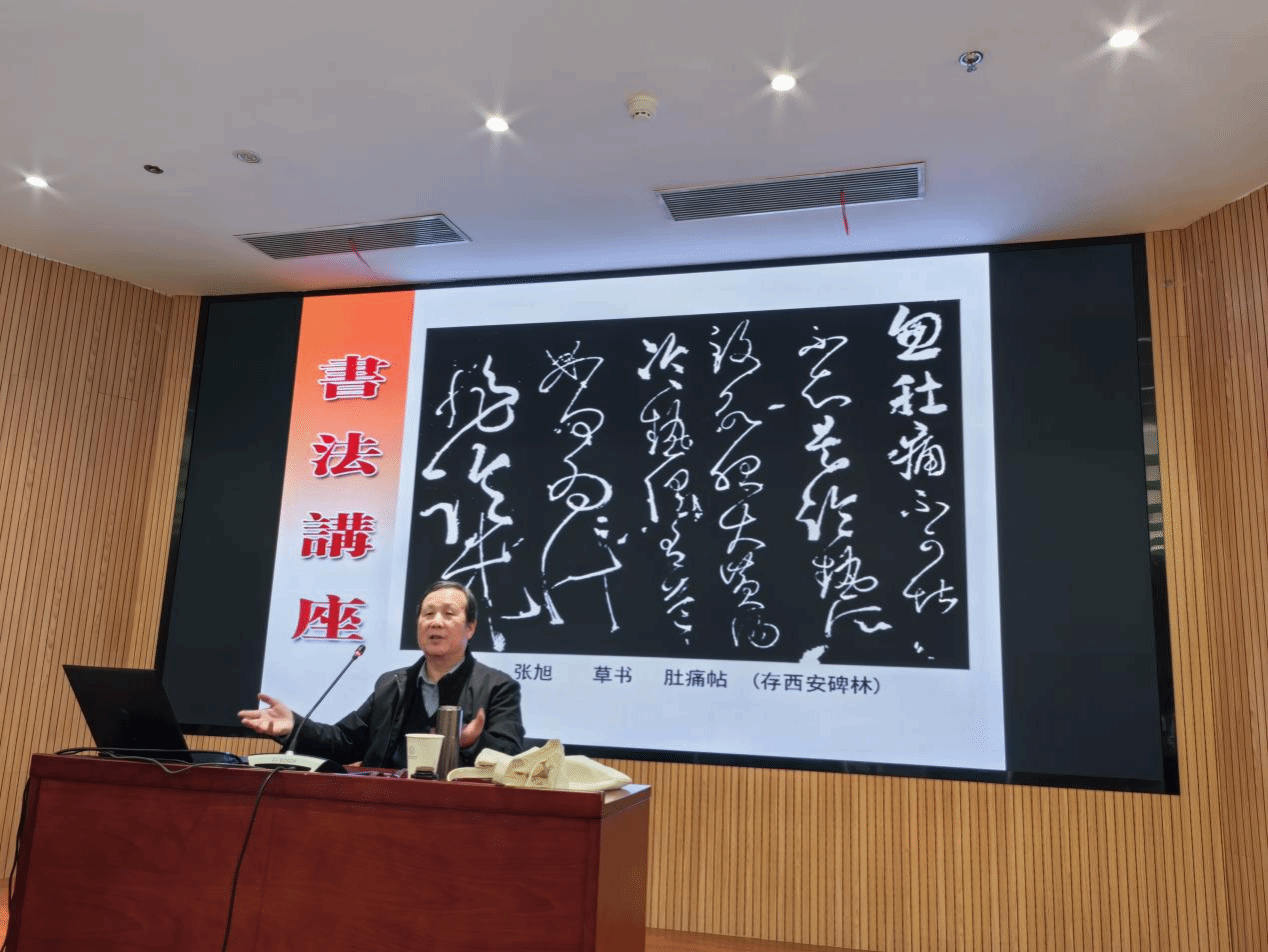 讲座中,倪教授基于自身在书法理论和书法创作上的精深造诣,结合古代书法家的个人经历和作品,分析了书法作为中国文化的重要内容,与中国人精神底色的紧密联系;通过梳理书法由古至今的发展脉络,带领师生在对一幅幅经典书法作品的鉴赏中体会中国书法的博大精深,揭示了书法对中国人的审美观、人生观的深刻影响。在最后,倪教授讲道:“在中国,一个人不知道王羲之就像法国人不知拿破仑一样令人不可思议,书法作为一种文化形态,已成了中国人生命的一部分。将中华文化传承好、发扬好,是每一个中国人应尽的责任。”
