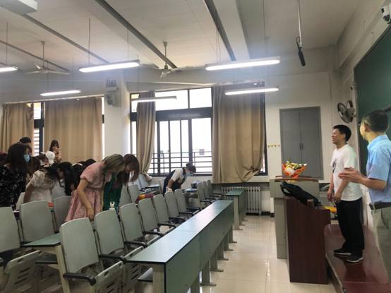 10日上午,学院全体领导和办公室人员分组来到教室,在课前为每一位上课老师献上一束鲜花,表示敬意,送上诚挚的祝福,并和学生一起向老师鞠躬致意,表达深切的感谢之情。