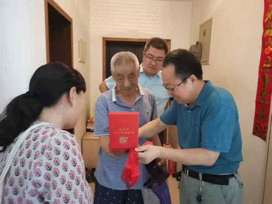 6月24日,党委书记李文兴带领党委副书记史耀媛、副院长潘明娟、副院长孙宁等一行人,逐户走访慰问了7位学院党龄50年以上的老党员,分别是1952年入党的肖志鹏老师、1956年入党的杨浩老师、穆庆新老师、肖子健老师、安锡怀老师、1965年入党的兰帮劳老师和李学诗老师。走访至每一处,一行人详细询问老党员们的身体健康状况,询问他们在生活上的困难,传达学校党委和学院党委的关怀与问候,认真听取他们对学校和学院发展的意见建议,并为他们送上“光荣在党50年”纪念奖章、学校党委准备的慰问信以及学院党委准备的慰问品。