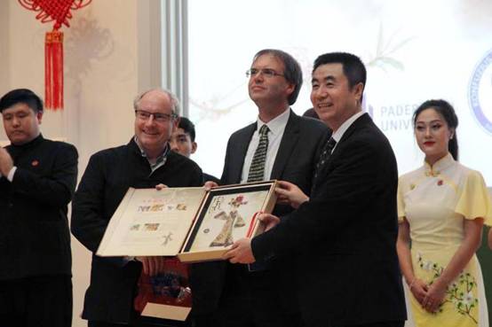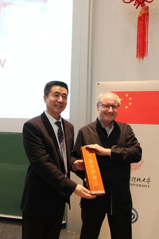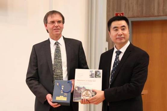演出结束后,王成来老师代表出访团与帕德伯恩大学副校长托斯特•迈雅教授及孔子学院德方院长沃尔夫冈•卜汉姆斯教授互赠礼物,合影留念。帕德伯恩大学副校长托斯特•迈雅教授评价道:“这是学校最棒的一次中国文化演出!”他在离场后又特地返回,再次感谢永利集团赴德演出交流团为他们带来了充满惊喜与快乐的优秀文化交流活动。