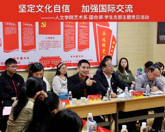 (通讯员 陈春晓 尚百成 陈明哲)10月17日下午,永利集团88304艺术系党支部联合国际合作与交流部、本科生与研究生党支部,在大学生活动中心310教室开展“坚定文化自信,加强国际交流”主题党日活动。校总会计师谢占军、永利集团88304党委书记李文兴、国际合作与交流部部长陈浩、永利集团88304艺术系党支部、国际合作与交流部党支部、本科与研究生党支部党员50余人参加活动。