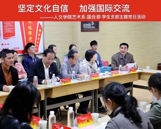 艺术系教师党员围绕树立文化自信,弘扬民族音乐艺术进行了发言。李歆老师就民乐音乐创作发展谈到,文艺创作不仅要有当代生活的底蕴,而且要有文化传统的血脉,要多将能够表现中国文化自信的音符展现给全世界;王鹃老师谈到中国传统舞蹈是中华民族文化的结晶,有着暖人的人性光辉和推动本民族发展的内涵和魅力,要在国际艺术交流中充满自信地展示中华民族优秀传统艺术。