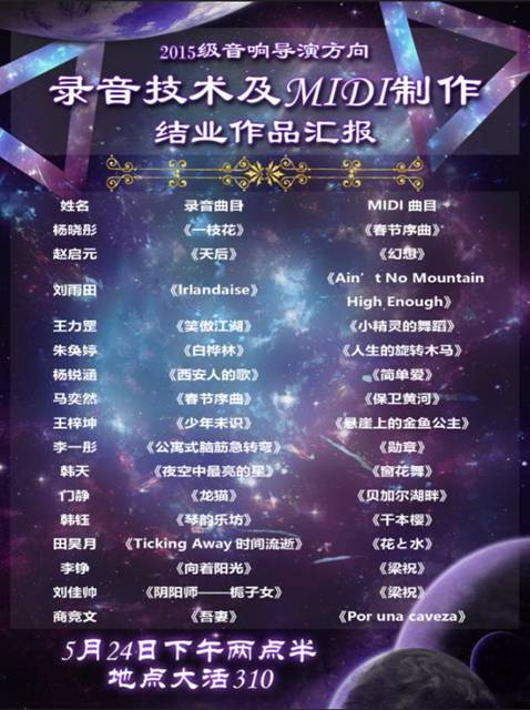 汇报分为两场,上半场是录音作品的汇报,下半场是MIDI作品的汇报,多达32首音乐作品带给了大家丰富别致的听觉感受。
