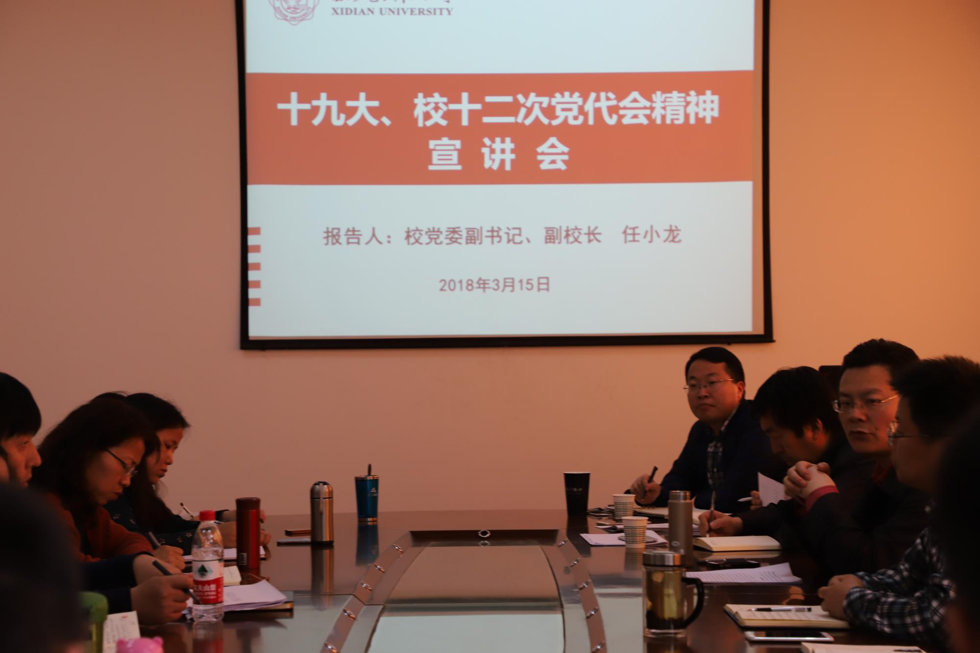 西电新闻网讯(通讯员 辛妮)3月15日下午,“永利集团第十二次党代会精神宣讲报告会”在信远二区135会议室召开,校党委副书记、副校长任小龙到会进行宣讲。永利集团88304与马克思主义学院全体班子成员,各系所、教研室主任,党支部书记及院机关人员30余人参加了会议。会议由马克思主义学院党委书记夏永林主持。
