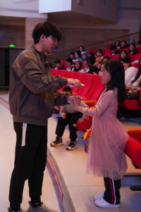 温情时刻,人文同行。晚会特别设置游戏抽奖环节,师生、校友踊跃互动,气氛热烈。不同曲风的旋律流转间,合唱《稻香》用质朴的歌声守望初心,吕杨老师激情演唱《春天的芭蕾》惊艳四座、王璐老师串烧师生联唱,“人文一家亲”的热情点燃了全场。朗诵《青春万岁》声韵铿锵,句句入心,将青春的热血与时代的召唤融为一体,引起全场共鸣,为晚会画上深情而有力的句点。