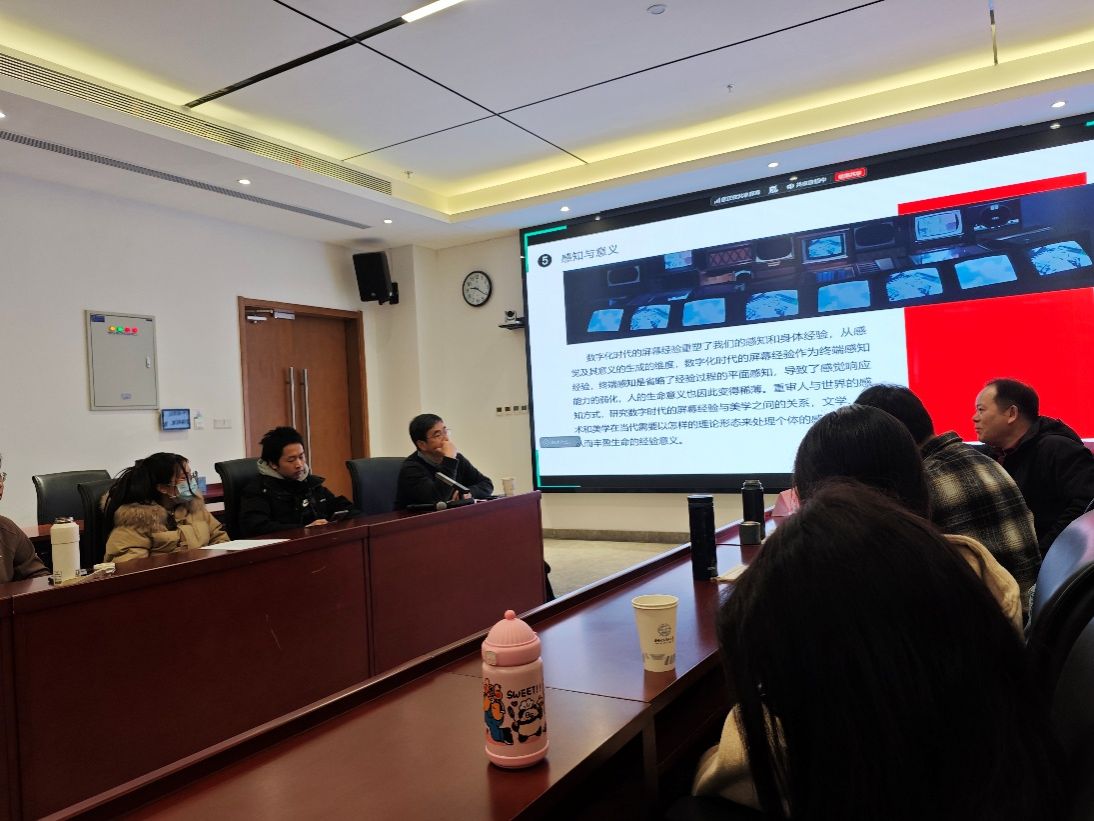 王大桥教授首先针对当代社会个体鲜活的肉身经验被屏幕经验所取代的困境,提出本次报告的主题,继而分析了技术的进步对感知经验的重新塑造,启发同学们思考人类的“代具性”问题。面对“代具性”带来的感性赤贫,现实也变得去真实化,现实的表征与“拟像”之间失去了差异性。当代的感知在屏幕的塑造下变得平面,经验和符号被分隔,人们因此也失去了建构意义的锚定点。技术的世界代替了可见的世界,使得个体的感知走向断裂,这一现象值得当代美学研究的进一步思考。讲座尾声,王大桥老师介绍了“静可闻针”“声音漫步”“物尽其用”等艺术实践行为在重新激活个人经验,构筑人与世界的感觉联系上所进行的探索,并以此启发同学们在专业学习中思考人文学科面向社会的价值和意义,“做有温度的学问”。