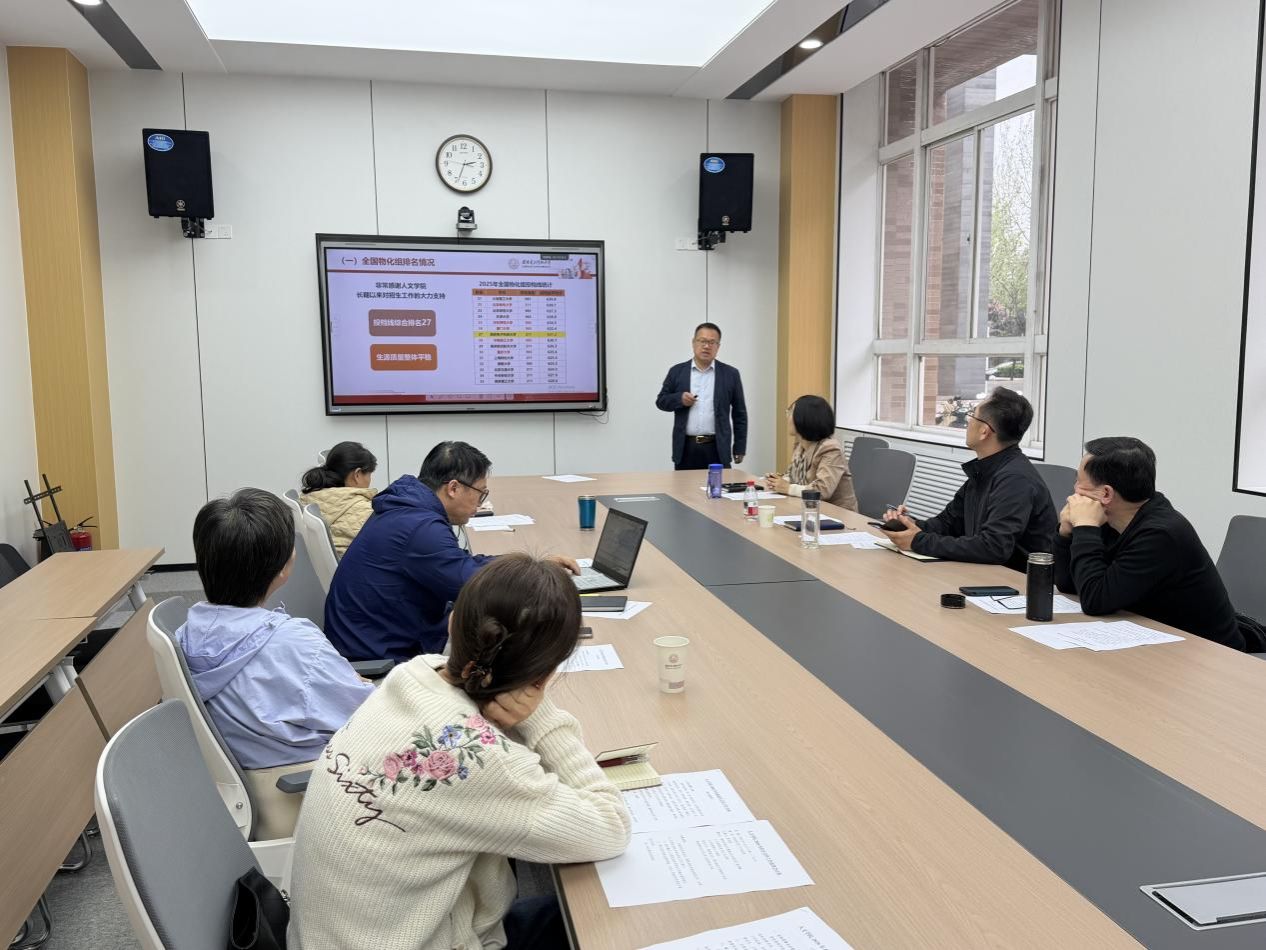 张宇鹏对学院近年来在招生宣传方面取得的成效给予了充分肯定,并结合学院所对接的省份(天津)近几年招生的整体形势,从生源整体情况、工作举措以及招生政策等方面作出了详细解读。他指出,学院教师要充分利用学校招办提供的大数据,熟悉近五年天津籍学生的专业分布、就业情况及保研率等,用数据说服考生,实现精准施策。