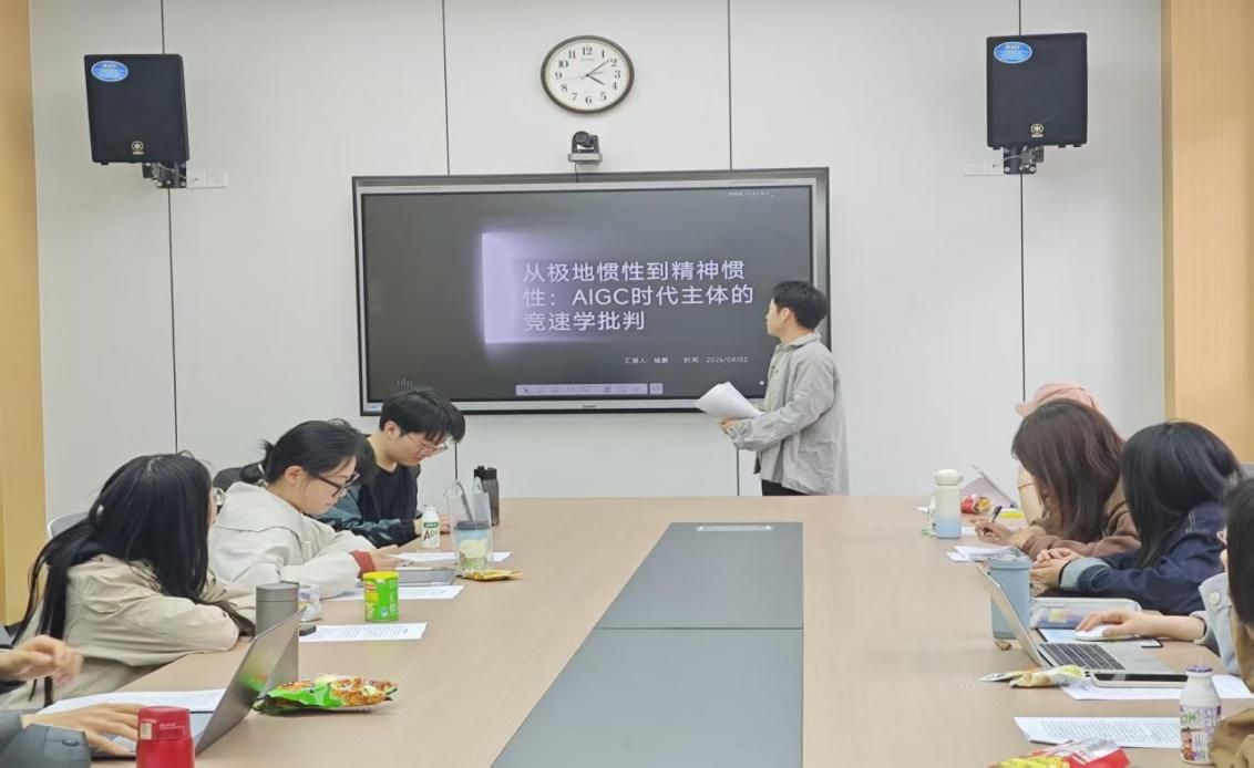 杨鹏以《从极地惯性到精神惯性:AIGC时代主体的竞速学批判》为题,讨论了在生成式人工智能(AIGC)爆发式发展背景下,人类知觉逻辑与主体意志被重构与剥蚀的具体路径这一主题。他运用保罗·维利里奥的竞速学理论,分析了AIGC如何将需要线性展开的思维路径坍塌为高维流形中的坐标映射,从而导致认知维度上的“时空消失”和“地形失忆症”。他认为,在“知觉工业化”的驱动之下,主体判断力被转化为标准化的“逻辑假体”,最终退缩为维里利奥定义的“终端公民”。