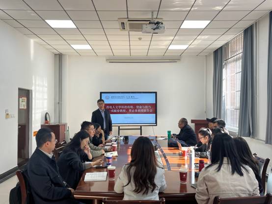 石福祁对两位教授的精彩报告表示感谢,他指出,两位教授从自身经历出发,通过真切生动的实例,向大家传达了西电人文学科的传统、使命与担当。他勉励青年教师向两位老先生学习,继承老先生们开创的优良传统,同时对青年教师提出了几点期望。一是融合,即把个人的“小我”融入学院的“大我”,把个人的“小历史”融入时代赋予我们的“大历史”,把个人发展融入学院发展,抓住学院发展的窗口期,包容合作,与学院同频共振,共谋发展;二是奉献,要做有“爱”的好教师,关心关爱学生,助力学生成长,要热心参与学校和学院的公共事务,投身于学校和学院事业发展的洪流之中;三是奋进,不但要在教学科研上精进有为,实现个人价值和理想,也要深刻理解人文学科教师担负的立德树人与文化传承使命,不懈追求,精益求精,为学院和全校的人文教育做出独特贡献。