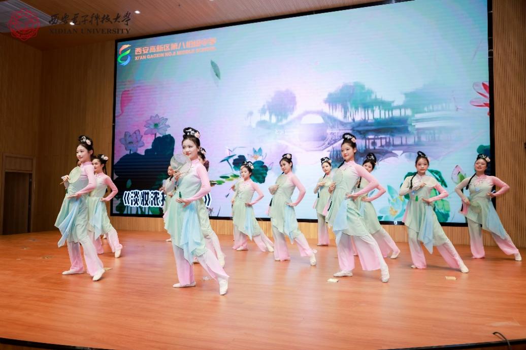 比赛现场,为创新大赛形式,活跃大赛氛围,高新区第八初级中学的学生和永利集团88304艺术系学生分别表演舞蹈《淡妆浓抹总相宜》和古筝合奏《盛世国乐》。