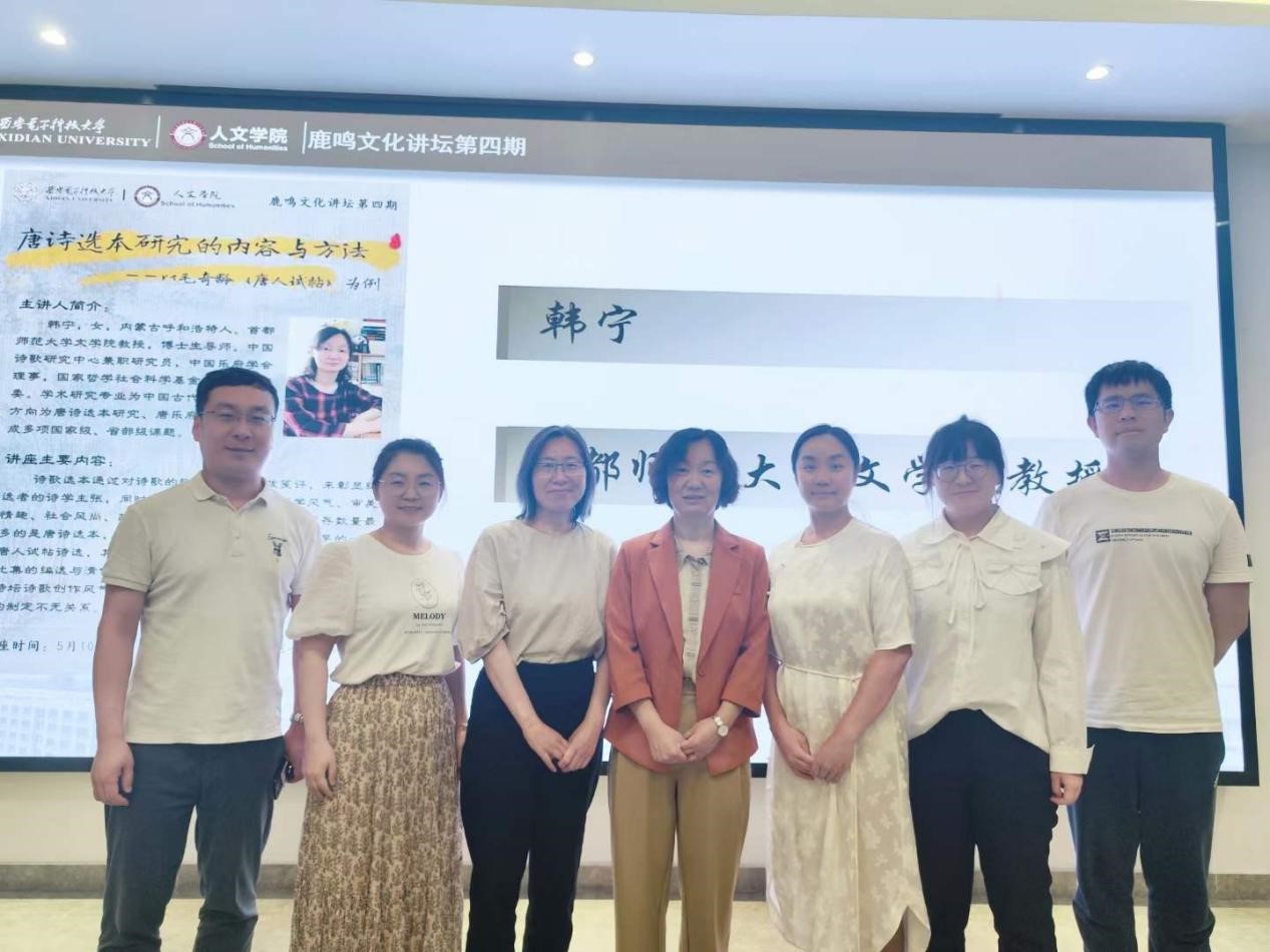 (通讯员 秦国程)5月10日晚7:00,永利集团88304中文系“鹿鸣文化讲坛”第四期在南校区会议中心121室举办。本次活动特邀首都师范大学文学院教授、博士生导师韩宁主讲,题目为“唐诗选本研究的内容与方法——以毛奇龄《唐人试帖》为例”。活动由中文系教授王志清主持,中文系主任朱佳宁及青年教师李东若、刘茸茸、连晨炜、王璐和四十余位在读本、硕学生聆听并参与了讨论。