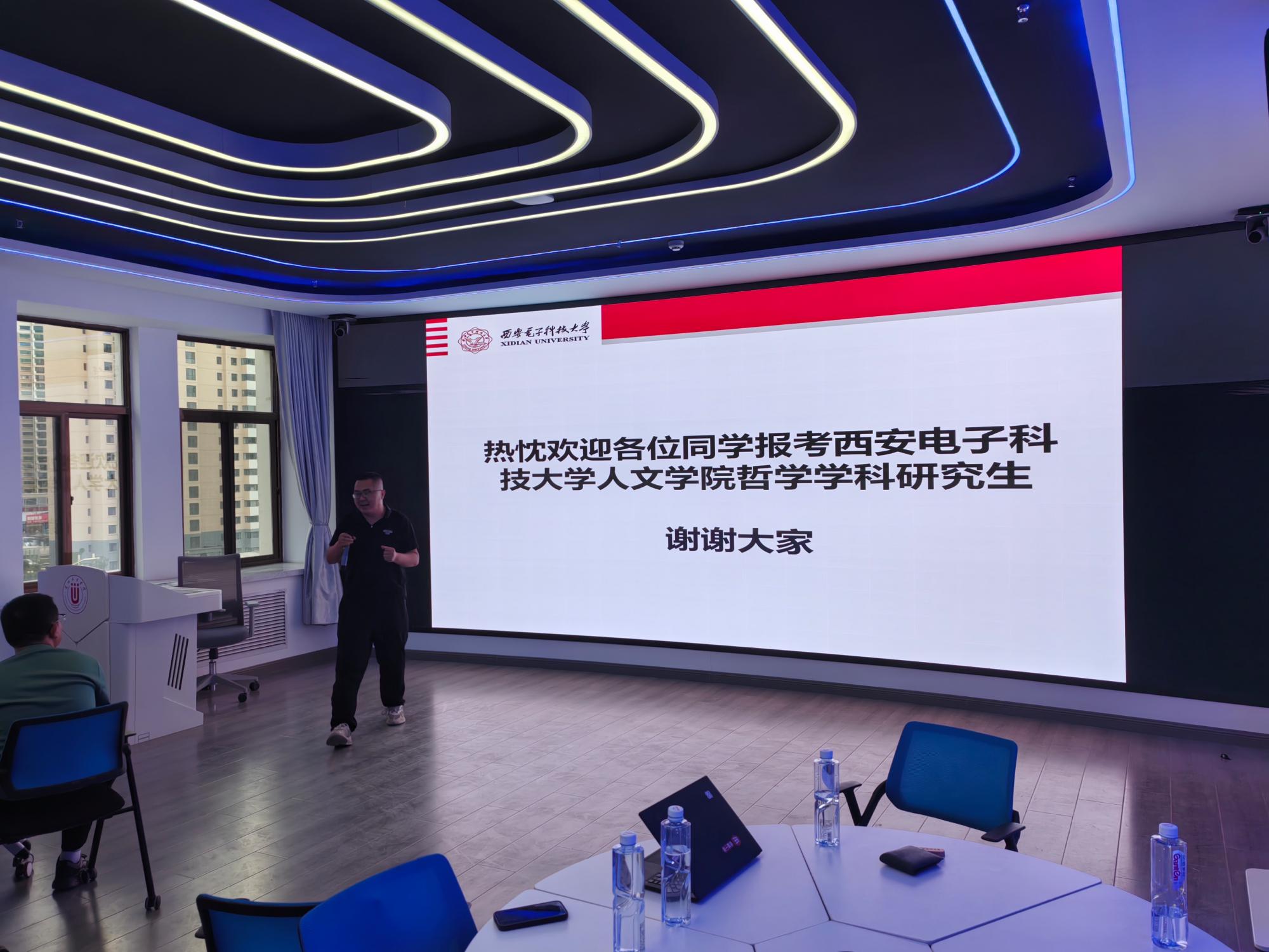 石福祁教授对两校对我院研究生招生工作的大力支持表示感谢,并简要介绍了我院的基本情况。随后,分管研究生工作的张斯珉副院长从四个方面介绍了我院哲学学科研究生的招生和培养情况。首先,他扼要梳理了近三年来研究生招生工作的大致考情,建议有读研意愿的学生应尽早选择目标院校。其次,他结合西安的历史文化与区位发展优势,全面介绍了我院哲学学科四个招生方向的学科特点与培养计划,并结合近几年毕业研究生继续深造和就业的典型案例,阐述了选择西电哲学学科读研所具有的若干比较优势。再次,他从学缘结构、科研成果以及国际化程度等方面,重点介绍了哲学学科各方向的师资构成,向两校师生展示了我院较为雄厚的师资力量。最后,他还介绍了学校关于研究生奖励资助方面的主要政策与做法,以及学院研究生教学、科研与研辅工作等其他事宜。张斯珉副院长的宣讲结束后,张万强副主任就上述问题进行了补充说明。