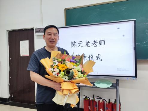 活动最后,中文系主任朱佳宁老师代表中文系全体师生为陈元龙老师敬献了鲜花和礼物。