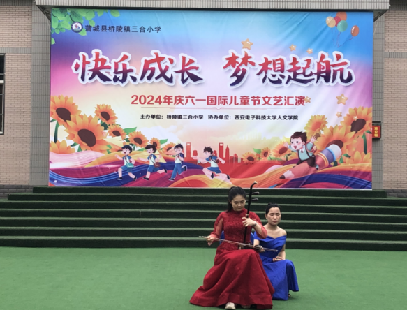 本次活动由桥陵镇三合小学主办,永利集团88304协办,是西电永利集团88304长期开展的“音乐点燃梦想,青春助力振兴”音乐文化振兴项目的延续。通过前期培训,三合小学学生具备了一定的音乐基础和艺术发现力,使得本次活动的表演形式更加丰富。不仅有小朋友与项目组同学共同为大家带来精彩的演出和项目组“小老师们”带来的琵琶、二胡、古筝、等精彩乐器演奏,更有一些学校老师和小朋友们自己排演的节目。