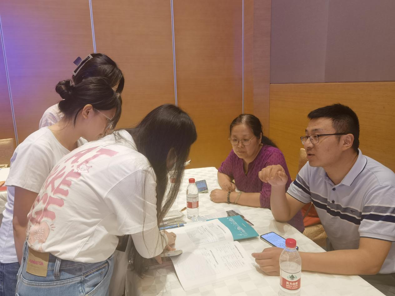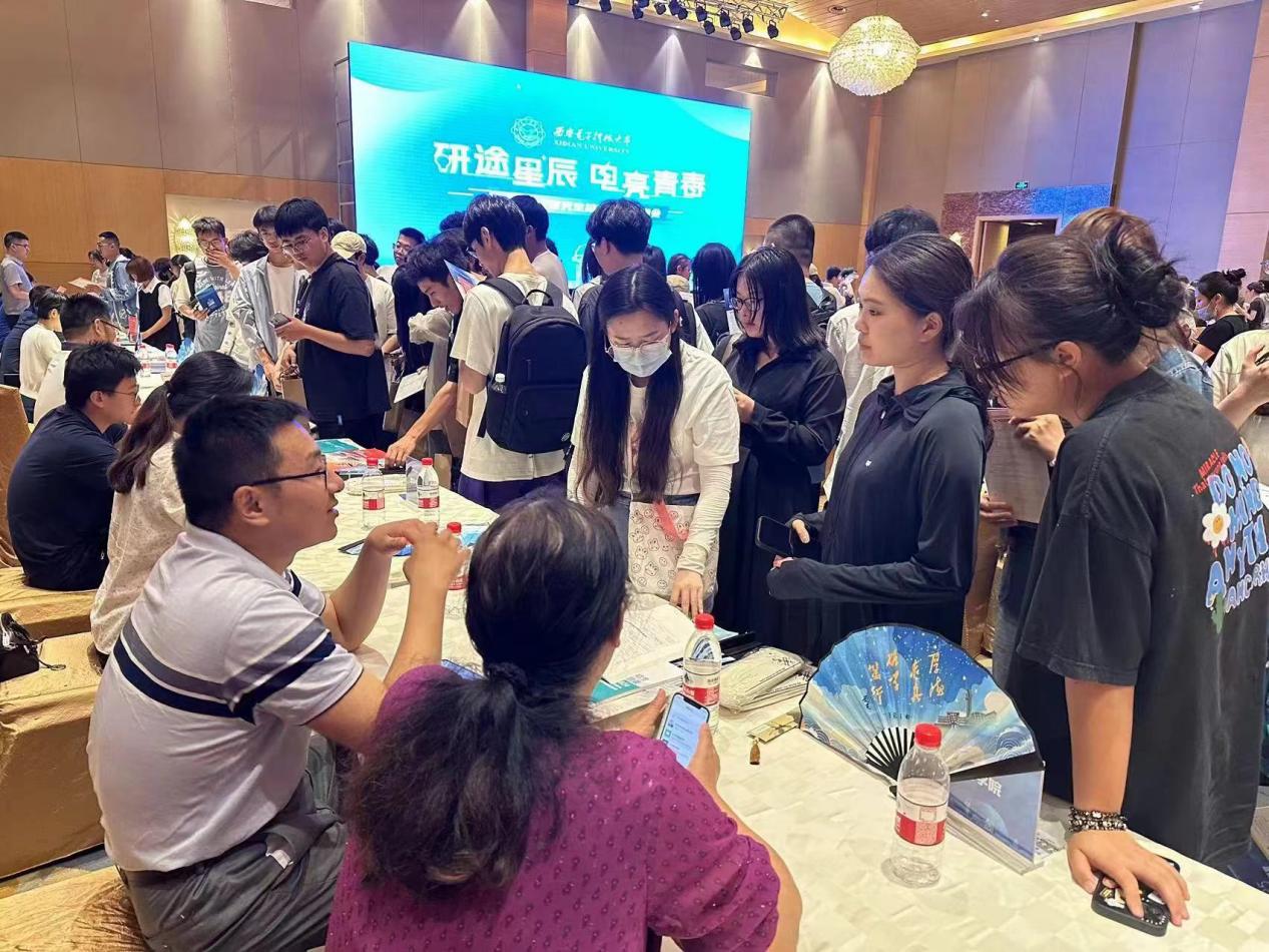 在自由交流环节,有多位学子围拢到我院的展台前,询问包括学科方向、复习注意事项、招生录取政策及复试形式等考生关心的重点问题。张斯珉副院长和王春枝老师一一做了详尽的回复,并再次欢迎同学们报考我院研究生,勉力他们扎实复习,认真备考,力争取得优异成绩。