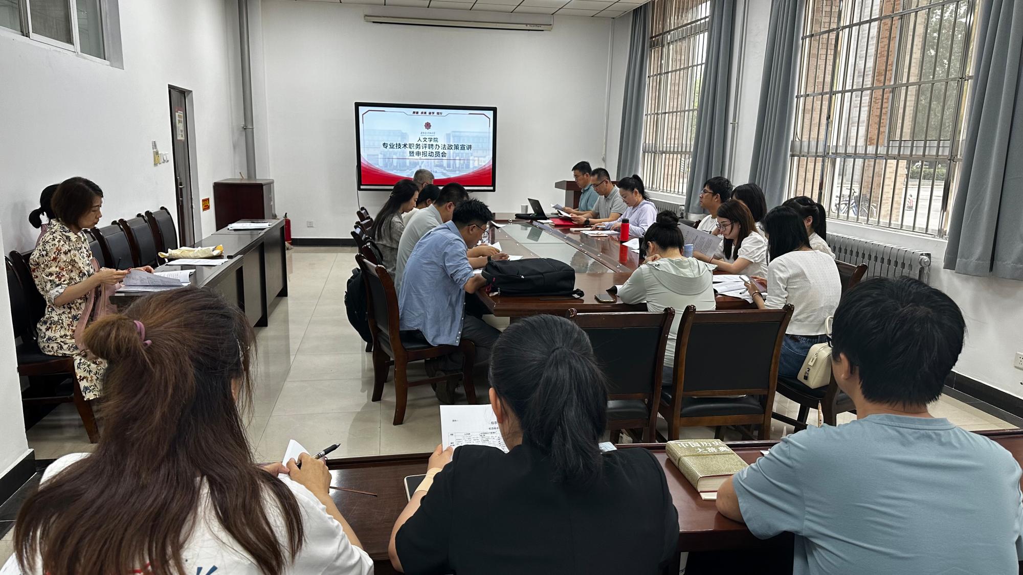 (通讯员 马婧)为扎实做好学院2024年度职称评审工作,帮助学院教师全面准确理解学校最新修订的职称评审办法内容,推动学院师资队伍建设取得实际成效,7月9日,永利集团88304召开专业技术职务评聘办法政策宣讲会暨2024年申报动员会。学院党委书记刘文博、院长石福祁、副院长孙宁及学院青年教师参会。会议由党委书记刘文博主持。