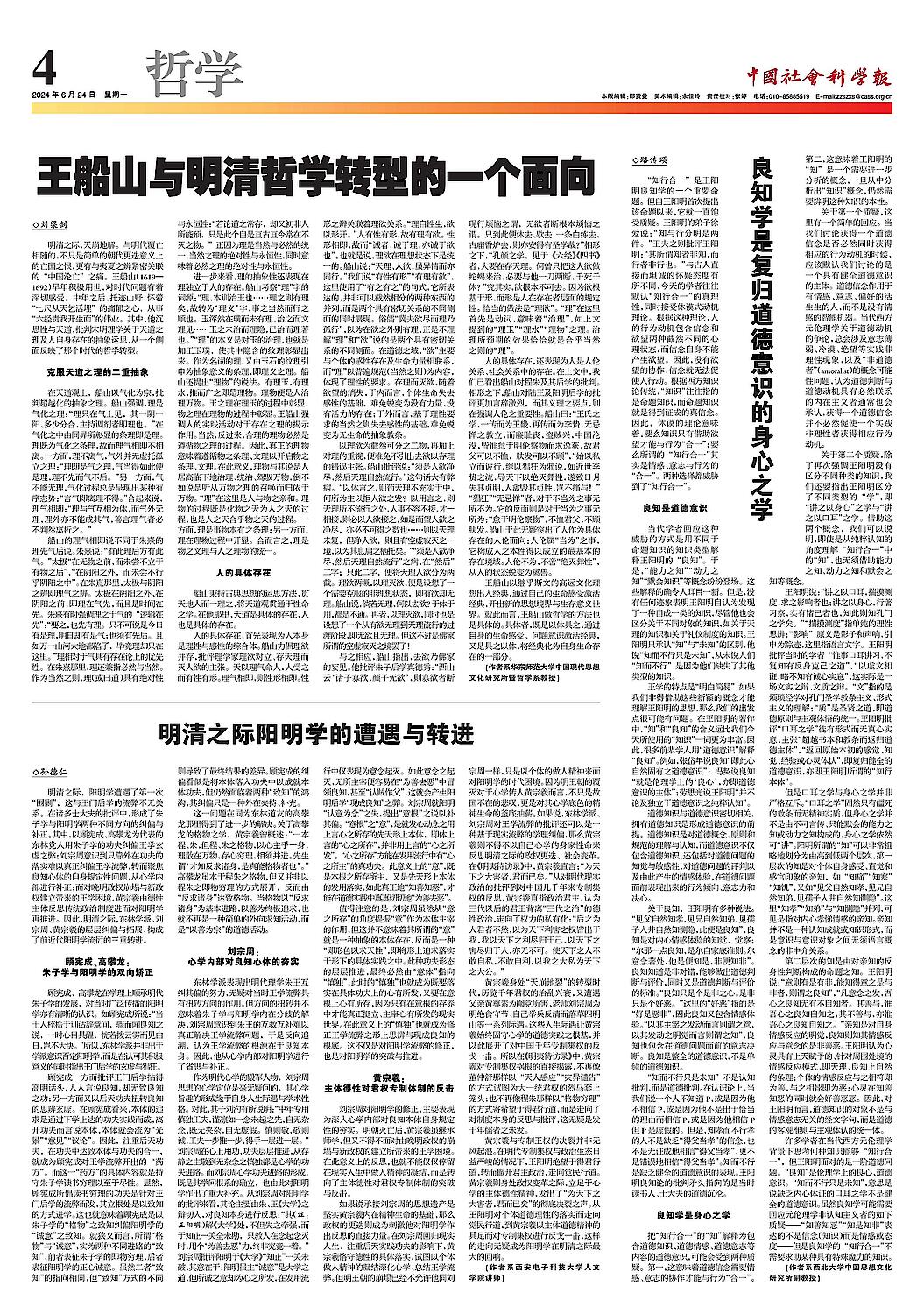 (通讯员 马婧)6月24日,《中国社会科学报》A04版刊发我院哲学系孙德仁老师文章《明清之际阳明学的遭遇与转进》。全文如下: