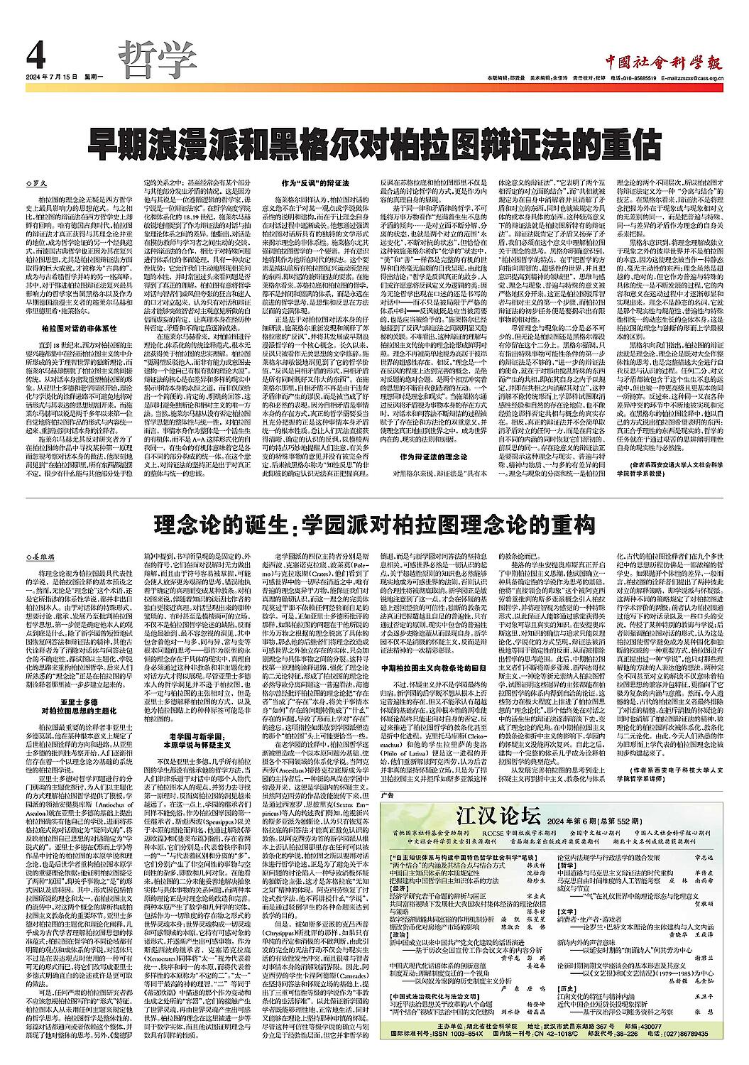 (通讯员 马婧)7月15日,《中国社会科学报》A04版刊发我院哲学系姜维端老师文章《理念论的诞生:学园派对柏拉图理念论的重构》。全文如下: