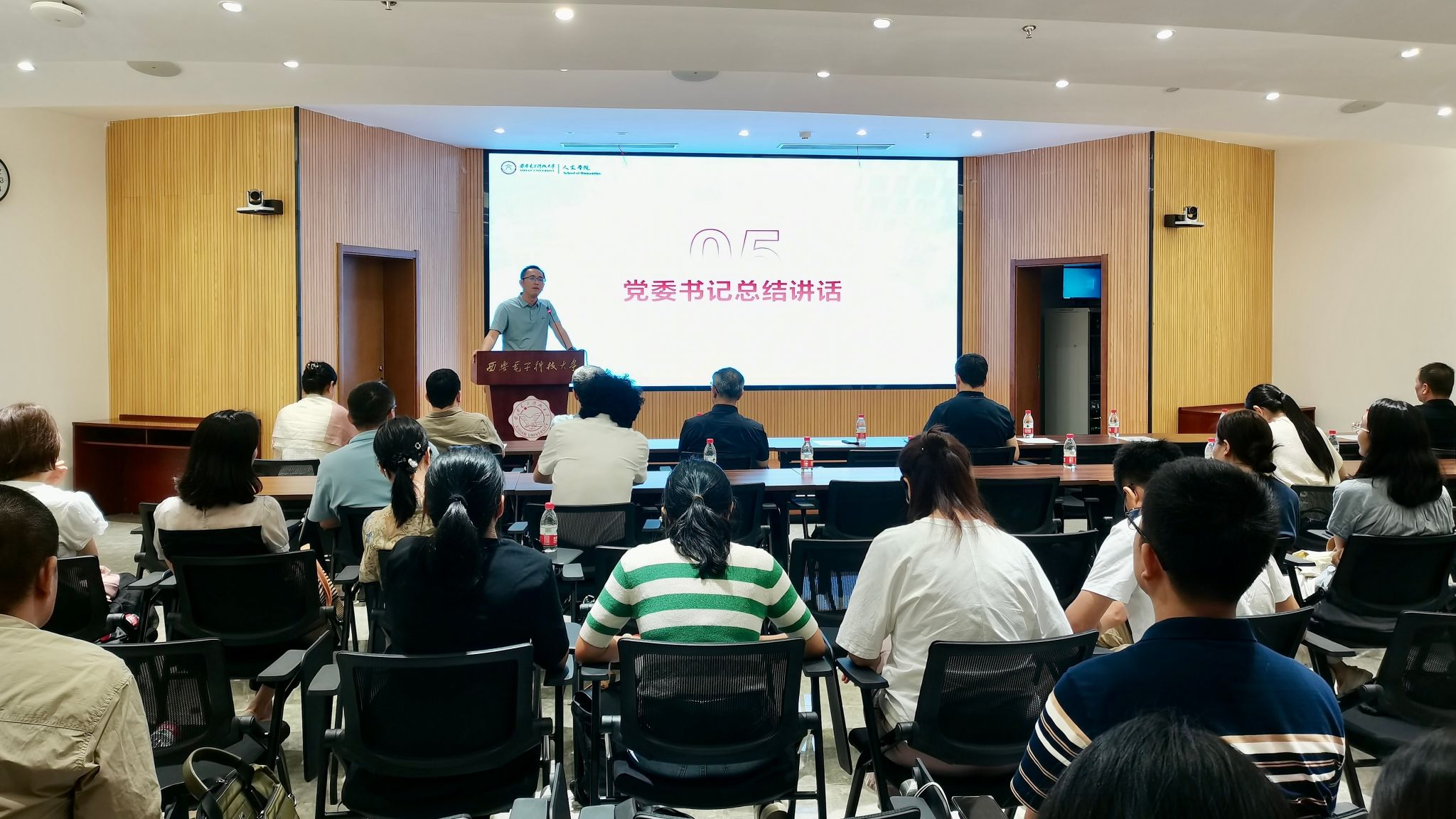 副院长潘明娟传达学习党的二十届三中全会精神,党委副书记史耀媛传达学习习近平总书记在全国教育大会的重要讲话精神,副院长华俊文领学了《新时代高校教师职业行为十项准则》内容。会上,还通报了近期校内外师德师风和教学违规相关案例,开展了师德师风专题教育。