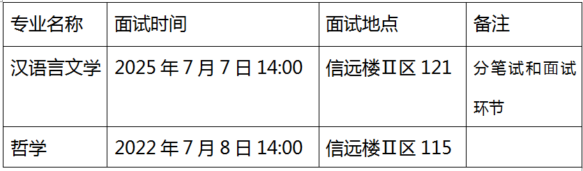 一、面试时间、地点 二、材料准备参加汉语言文学专业面试同学,请携带本人高考语文成绩单、前四学期成绩单(盖书院公章),在面试前备查。参加哲学专业面试同学,请携带本人前四学期成绩单(盖书院公章),在面试前备查。 永利集团88304 2025年7月6日