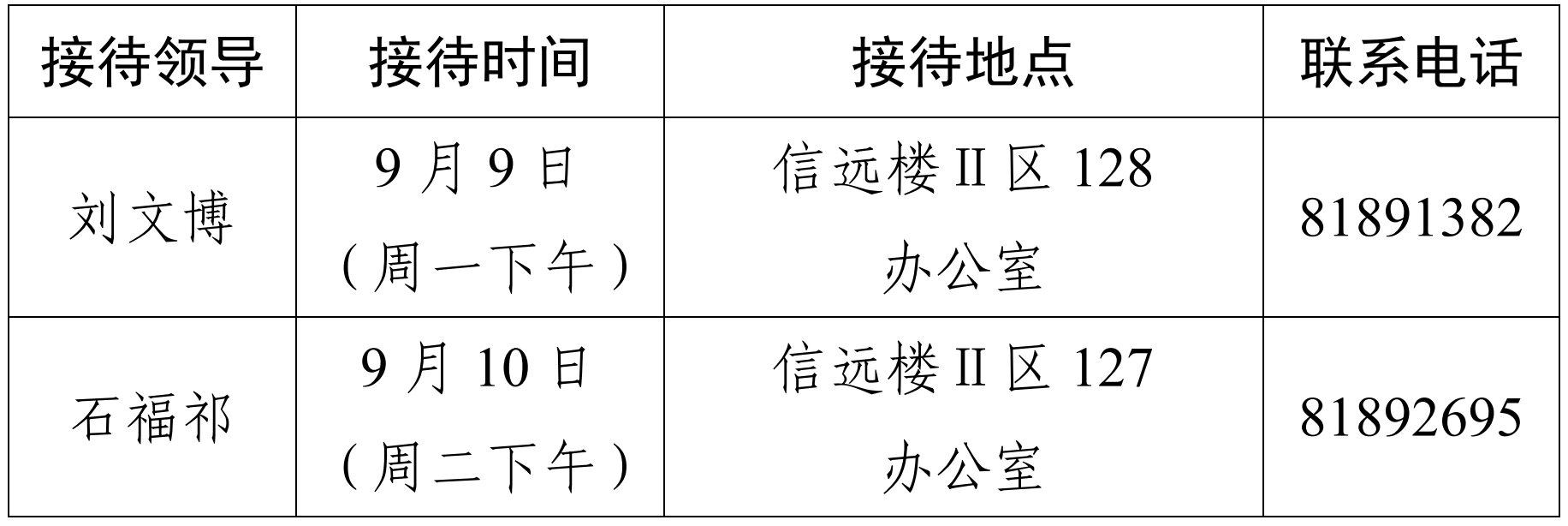 根据《永利集团88304领导班子接待日制度》精神,每周安排两位学院领导接待师生。现将9月9日-13日学院领导接待安排公布如下: