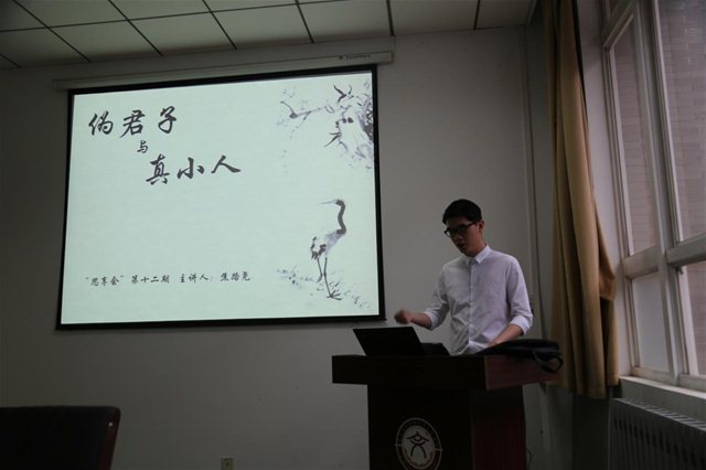 (通讯员 高潮)5月27日晚7点,永利集团8830414级哲学系焦路尧同学在信远135会议室主讲了主题为“伪君子与真小人”的第十三期思享会。本期思享会由高潮同学主持,一同到场的还有永利集团88304郁志强老师、杨子江老师,哲学系14级、15级部分学生和终南文化书院一期、二期、三期的部分学员以及来自电子工程、微电子等其他学院的同学。