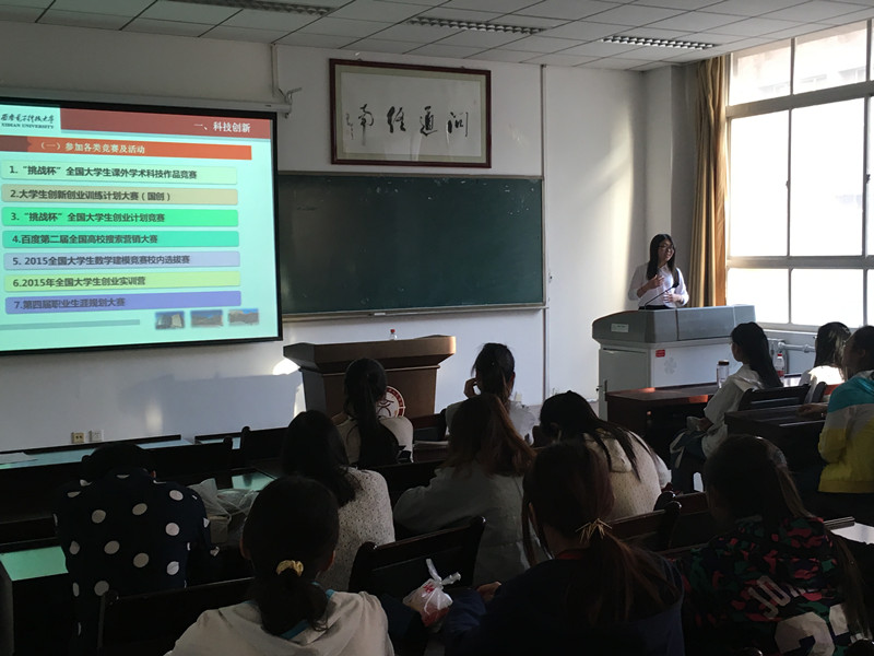 报告分为两部分,科技创新与课外实践,分部分讲述了自己所获得的竞赛经验与成果。徐倩总结到:一、科技创新类同学应踊跃参与学校的各类竞赛及活动,不要因为自己是文科生望而却步,培养自己作为文科生的优势,加强写论文的能力。并且要学会一材多用,用心做出一份好的成果,适当改变便可以参与不同的竞赛,使自己的成果放大化。二、课后实践类要敢于参与,敢于去表达自己的想法,参与实践活动可以锻炼自己的沟通交流能力,并且可以接触到更加优秀的人才,从他们身上学到闪光点来提高自己。志愿活动中给他人送去关怀,政府见习中积累自己工作经验,专题研讨座谈会明确自己的大学计划。